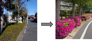 ・低木刈り込み、中木剪定等を行っております。刈り込んだツツジが、今は花をたくさんつけています。