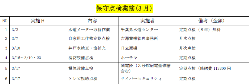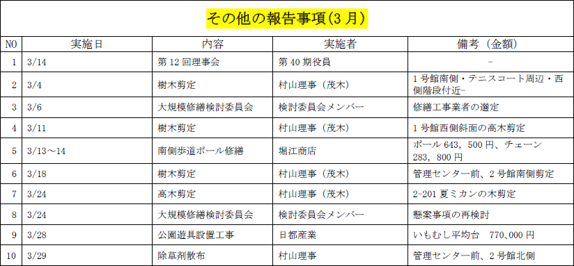 <管理室からの報告・お知らせ>